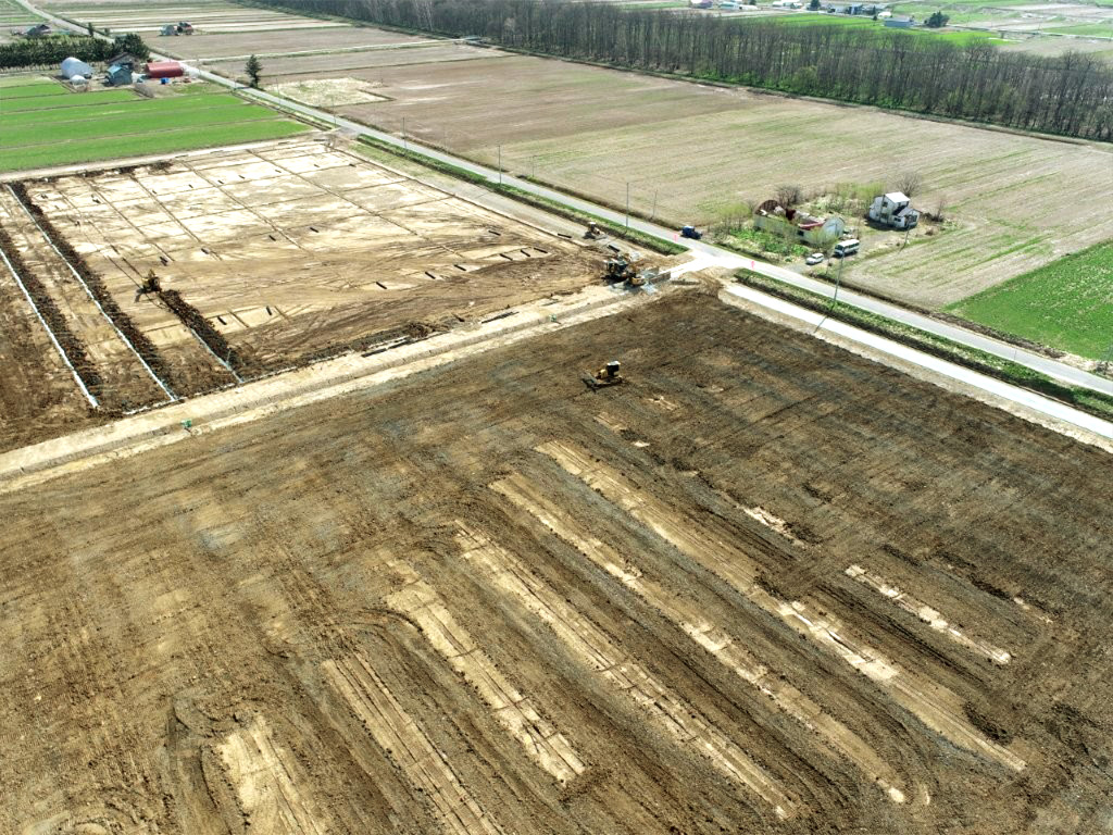 この工事は、元の小さなほ場を大型化にする工事です。大型化にすることにより、機械も大型機械を使用でき、ほ場に出入りする回数も減るので農作業の作業効率が上がるメリットがあります。